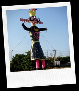 On the tenth day, larger than life effigies of King Ravana, his son Meghnath and brother Kumbhakarna are set to fire.
